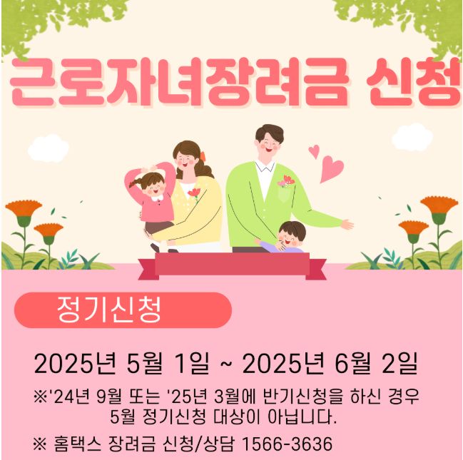 | 정기신청* | 근로 · 사업 · 종교인 소득자 | ’24년 연간 소득 | ’25.5.1.~6.2. | |
